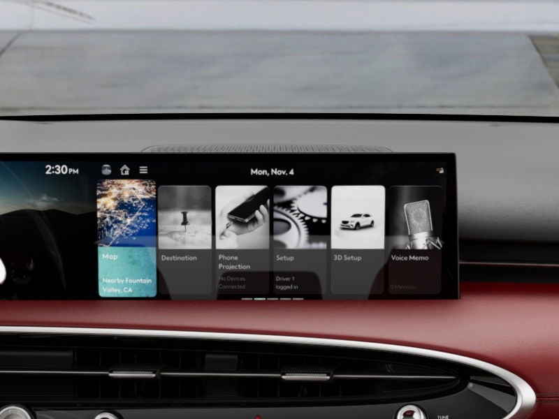 - Radio: 14.5" Navigation System w/AM/FM/HD Radio -inc: SiriusXM radio w/90-day trial subscription (N/A in AK or HI), wireless Android Auto and Apple CarPlay, Genesis Connected Services, Bluetooth® hands-free phone & audio streaming system, Bang & Olufsen sound system w/16 speakers, WiFi hotspot, internal amplifier and USB port