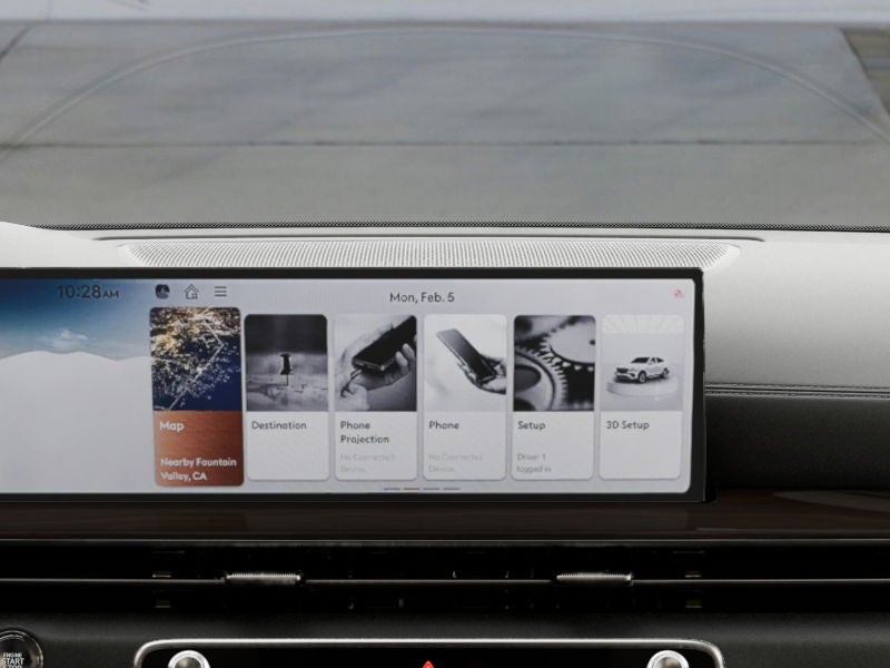 - Radio: AM/FM/HD Bang & Olufsen Sound System -inc: 1400 watts, 18 speakers, 14 channel amplifier, 27" integrated OLED instrument cluster and navigation system, SiriusXM Radio w/90-day subscription (not available in AK or HI), cloud connected platform (cloud profiles, connected routing, dynamic voice recognition, OTA updates), wireless Apple CarPlay, wireless Android Auto, Bluetooth® hands-free phone system w/audio streaming, wireless phone charger, Wi-Fi hotspot, steering wheel controls, USB and Genesis Connected Services
