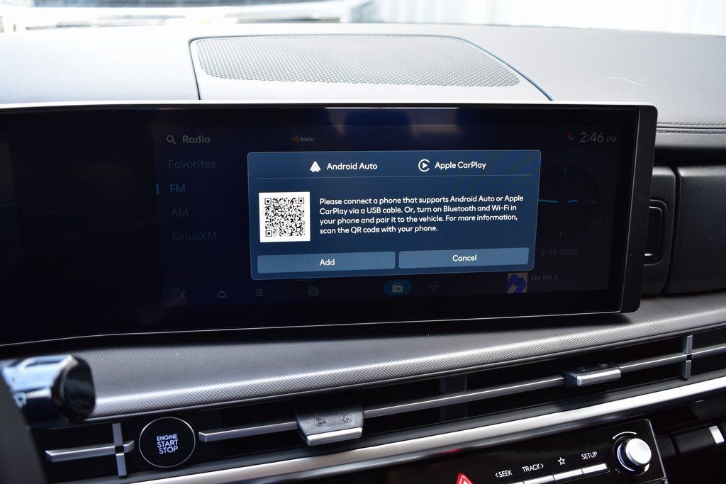 • Radio: AM/FM/HD Display Audio -inc: 6 speakers, 12.3" audio display, wireless Apple CarPlay and Android Auto, Bluetooth® hands-free w/wireless audio streaming, USB connectivity, SiriusXM, Blue Link connected car system and rear seat quiet mode