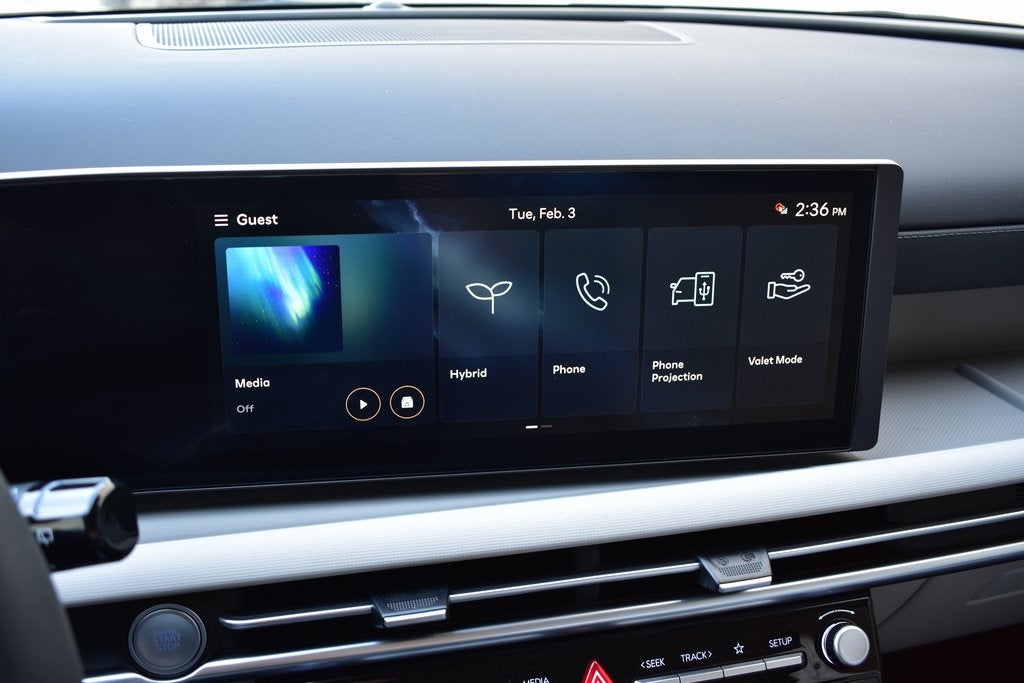 - Radio: AM/FM/HD Audio System -inc: 12.3" color touchscreen display, 6 speakers, SiriusXM satellite radio system (3-month trial subscription), wireless Apple CarPlay and Android Auto integration, controller OTA update capability, Blue Link connected car system and USB connectivity