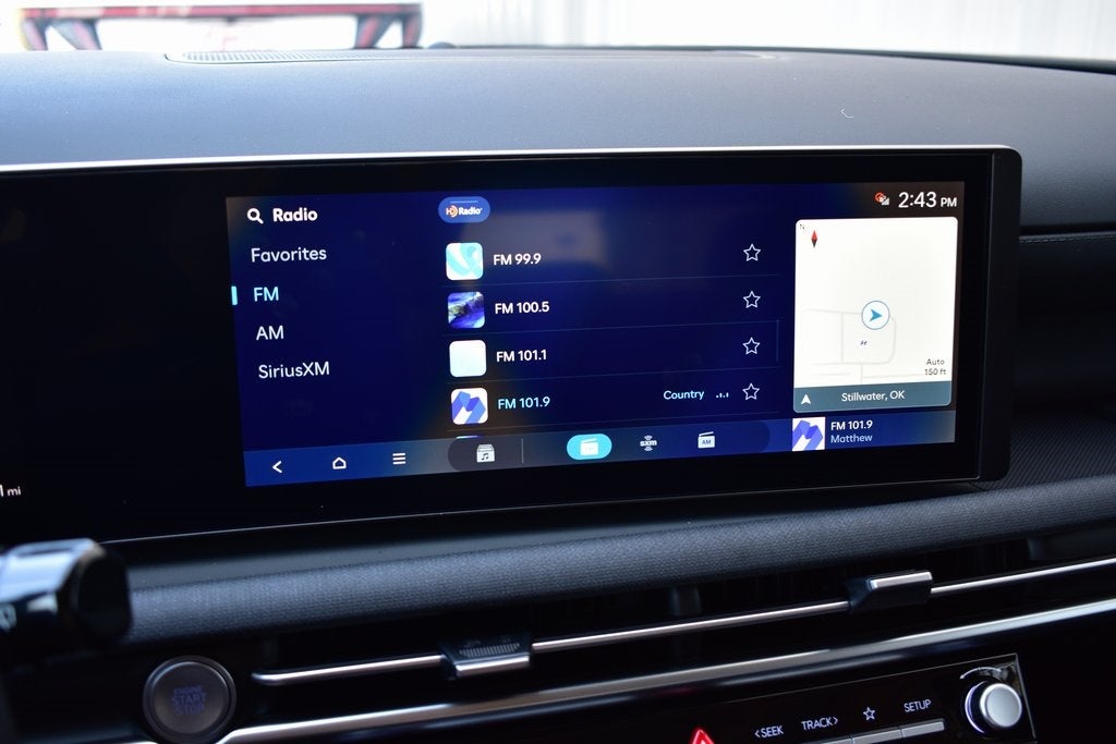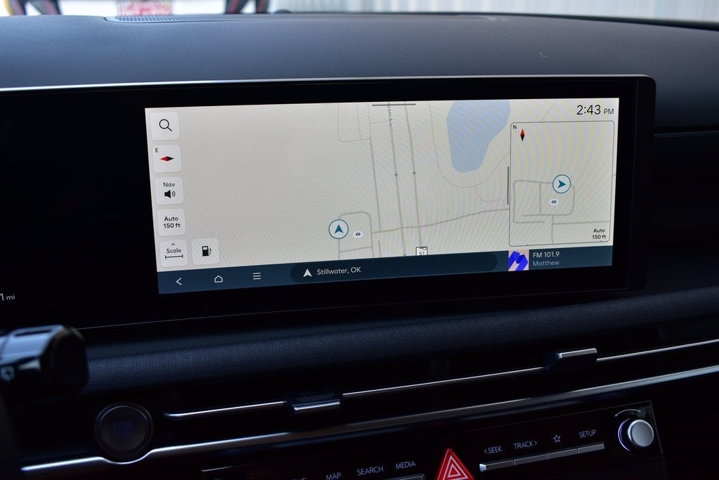 - Radio: AM/FM/HD Audio System -inc: 12.3" color touchscreen w/onboard navigation, 6 speakers, SiriusXM satellite radio system (3-month trial subscription), wireless Apple CarPlay and Android Auto integration, dynamic voice recognition, controller OTA update capability, map and multimedia software OTA update capability, Blue Link connected car system and USB connectivity