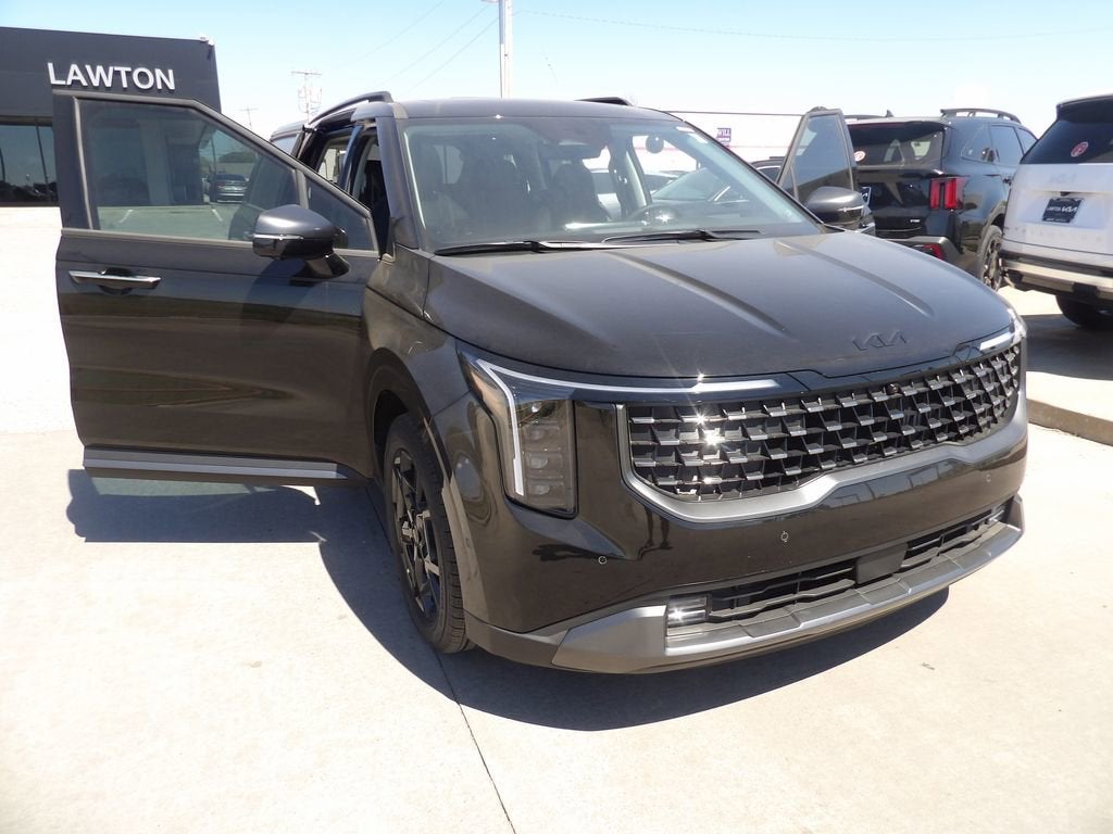 2026 Kia Carnival Hybrid SX Prestige 4D Passenger Van FWD Aurora Black Pearl 1.6L I4 DGI Hybrid Turbocharged DOHC 16V LEV3-SULEV30 Bluetooth® WIRELESS / HANDS FREE, BACKUP CAMERA, 1.6L I4 DGI Hybrid Turbocharged DOHC 16V LEV3-SULEV30.Lawton Kia is your Oklahoma Kia dealership to buy the latest Kia cars and SUVs as well as for Kia auto repair. Our Oklahoma Kia dealer stocks a wide variety of new Kia cars & Kia SUVs in all models including the Kia Sorento, EV6, Forte, K5, Rio, Stinger, Sportage, Soul, Nexo, Sorento, Seltos, and Telluride. Also included with every purchase of a new Kia car or Kia SUV, is the Lawton Kia Advantage which provides Engines for Life, oil changes for 3 years (synthetic oil change requires upcharge), window tint, paint & fabric protection, Brake Plus, and complimentary service loaners. Lawton Kia also employs a number of Kia and ASE certified technicians to service any Kia, Chrysler, Jeep, Dodge, Ram, Ford, Chevrolet, GMC, Toyota, Nissan, Honda, Hyundai, Mazda, Volkswagen, Mitsubishi, Subaru, or other make of automobile. No matter what make of automobile you have, or what your service need is (oil change, tire rotation, new tires, alignment, transmission flush, air conditioner concern, or whatever service you need) we've got you covered. Lawton Kia proudly sells Kia cars & Kia SUVs in Oklahoma and northwest Texas including Kia in Lawton, Kia in Wichita Falls, Kia in Burkburnett, Kia in Altus, Kia in Chickasha, Kia in Duncan, Kia in Elgin, Kia in Blanchard, Kia in Grandfield, Kia in Walters, Kia in Rush Springs, Kia in Norman, Kia in Moore, Kia in Oklahoma City (OKC), Kia in Yukon, Kia in Reno, Kia in Midwest City, Kia in Del City, Kia in Dallas, Kia in Fort Worth, and all the many areas in between. Please visit our Kia dealership in person to see just how many Kia advantages we provide or shop our Kia inventory at www.lawtonkia.com. We look forward to seeing you in a Kia.