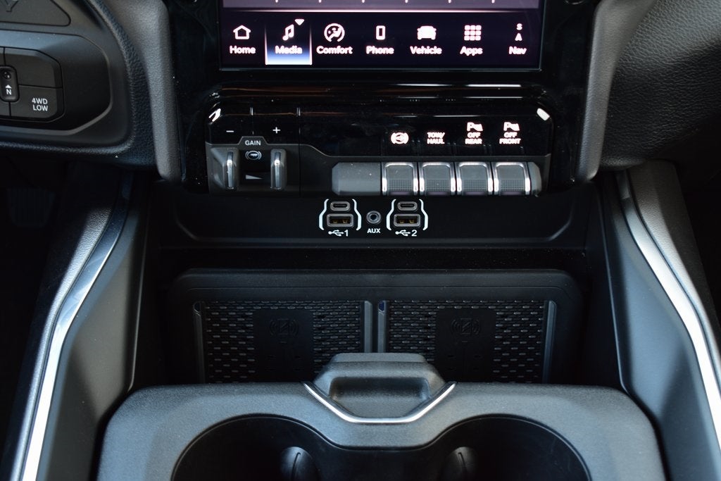 115V Auxiliary Rear Power Outlet, 3.42 Axle Ratio, 5th Wheel/Gooseneck Towing Prep Group, 9 Speakers, Active Lane Management System, Adaptive Steering System, Android Auto/Apple Car Play Navigation, Anti-Spin Differential Rear Axle, Apple CarPlay/Android Auto, Auto Dim Exterior Mirror, Auto High Beam Headlamp Control, Auto Power-Folding Mirrors, Auto-Dimming Exterior Passenger Mirror, Auto-dimming Rear-View mirror, Automatic temperature control, Black Wheel Center Hub, Drowsy Driver Detection, Dual Wireless Charging Pad, Emergency Vehicle Alert System (EVAS), Folding Flat Load Floor Storage, Front fog lights, Front Seat Back Map Pockets, Full Length Upgraded Floor Console, Garage door transmitter, Heated Front Seats, Heated Second Row Seats, Heated Steering Wheel, High Back Seats, Laramie Level 1 Plus Equipment Group, Leather Trimmed Bucket Seats, LED Bed Lighting, Mirror Running Lights, MOPAR Deployable Bed Step, Navigation System, Night Edition, ParkView Rear Back-Up Camera, Power 2-Way Driver Lumbar Adjust, Power 2-Way Passenger Lumbar Adjust, Power Adjust 8-Way Driver Seat, Power Adjust 8-Way Front Passenger Seat, Power Telescoping Mirrors, Power-Adjustable Convex Aux Mirrors, Quick Order Package 24H Laramie, Radio/Driver Seat/Mirrors/Pedals Memory, Rain Sensitive Windshield Wipers, Rear 60/40 Folding Seat, Remote Tailgate Release, Sport Performance Hood, Traffic Sign Recognition, Ventilated Front Seats, Wheels: 20 x 8.0 Black Painted Aluminum.