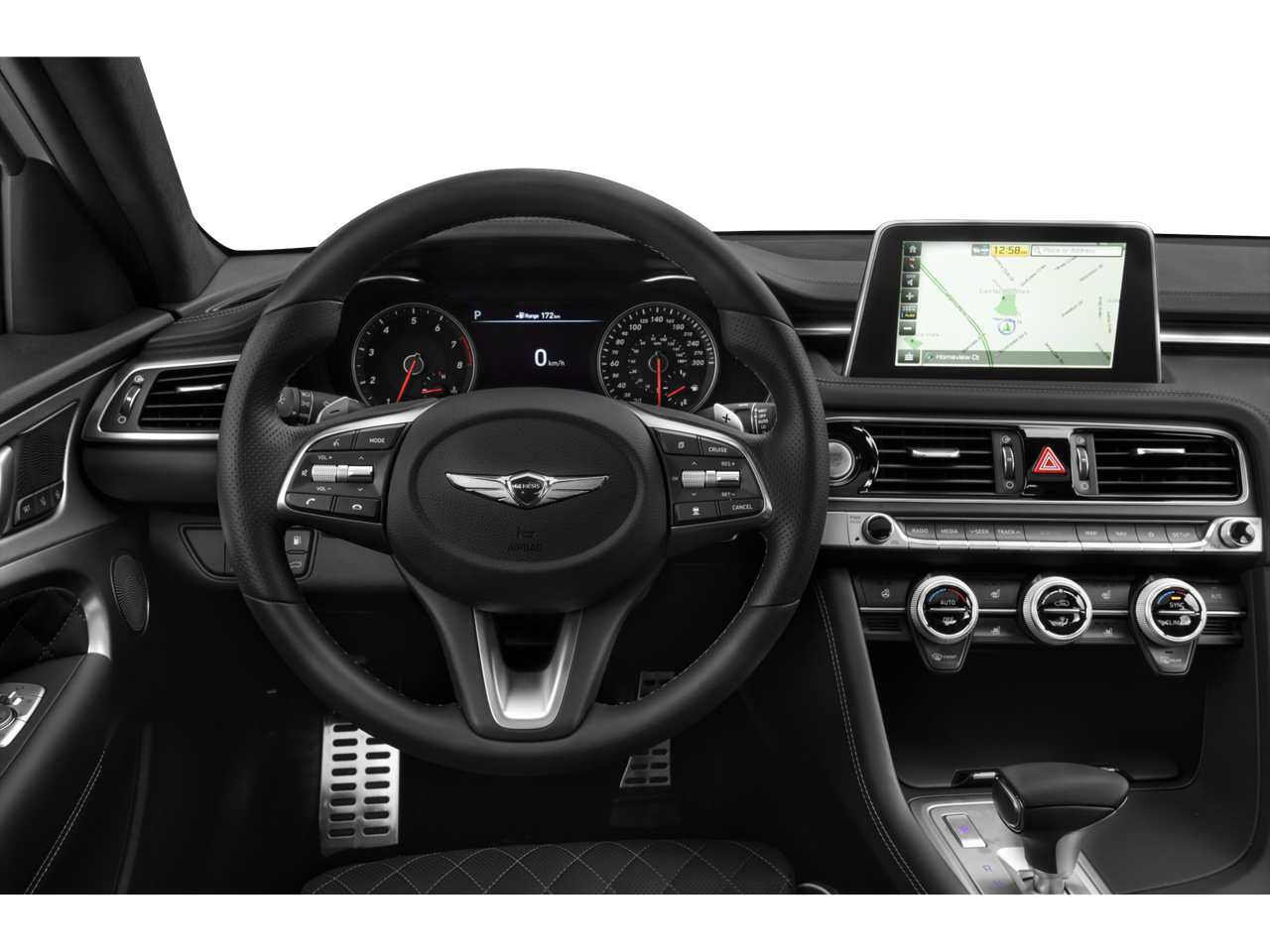- Radio: AM/FM/SiriusXM/HD Lexicon Audio System -inc: 600 watts, 11 channel digital external amplifier, 15 high efficiency speakers including 2 subwoofers, Quantum Logic surround sound, Clari-Fi music restoration, 8" 720p HD touchscreen display, 12v power outlet, wireless charging pad, speed-sensing auto volume control, HD Traffic, AVN 5.0 integrated navigation system, Android Auto, Apple CarPlay, 2 front USB ports, auxiliary input jack, Bluetooth® hands-free phone system and Genesis Connected Services