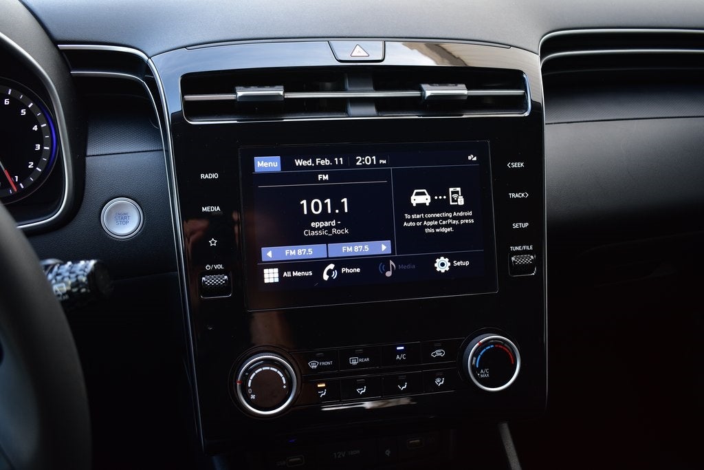 - Radio: AM/FM/HD/SiriusXM Audio System -inc: 8" color touchscreen display w/6 speakers, Bluelink connected car system, Bluetooth® w/voice recognition, wireless Apple CarPlay and Android Auto and USB connectivity