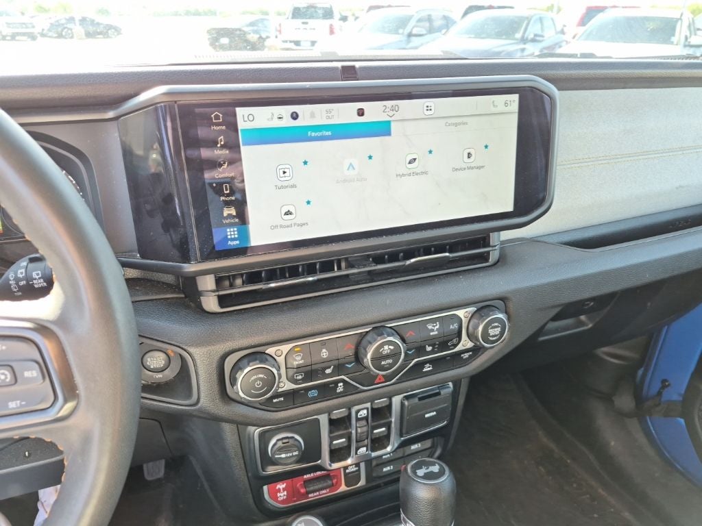 Inside, the Wrangler Willys 4xe offers a wealth of premium amenities, including the Uconnect 5 infotainment system with a 12.3-inch display, dual-zone automatic climate control, and a heated steering wheel. The Convenience Group adds even more convenience with features like remote start, heated front seats, and a universal garage door opener.