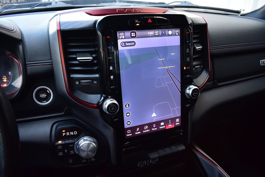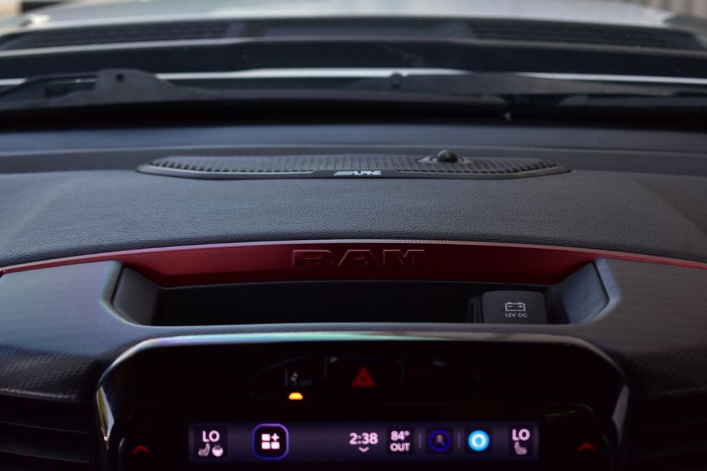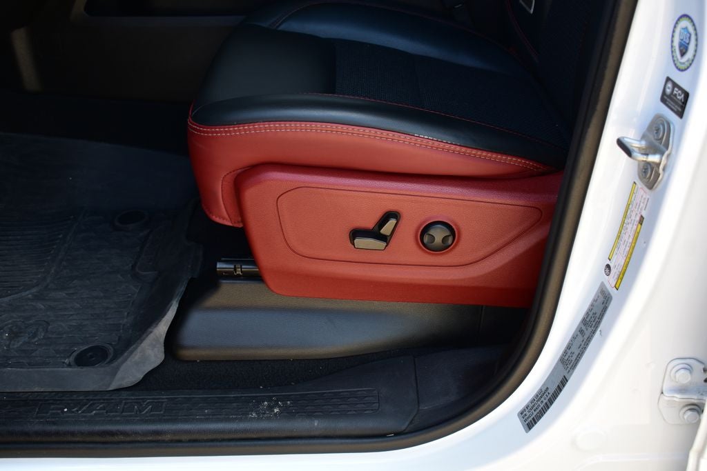 - 9 Speakers, Uconnect 5 Nav w/12.0 Display, Automatic temperature control, Front dual zone A/C, Rear Window Defroster, Power driver seat, Power Tailgate, Auto High-beam Headlights, Front fog lights, Auto Power-Folding Mirrors, Auto-Dimming Exterior Driver Mirror, Black Premium Power Mirrors, Convex Wide-Angle Exterior Mirror Insert, Exterior Mirrors Courtesy Lamps, Exterior Mirrors w/Heating Element, Exterior Mirrors w/Supplemental Signals, 4G LTE Wi-Fi Hot Spot, Apple CarPlay/Android Auto, Auto-dimming Rear-View mirror, Full Length Upgraded Floor Console, Garage door transmitter, Heated steering wheel, Power Adjustable Pedals, Wireless Charging Pad, Android Auto/Apple Car Play Navigation, Navigation System, ParkView Rear Back-Up Camera, Remote Tailgate Release, Cloth/Vinyl Bucket Seats, Heated front seats, Power Adjust 8-Way Driver Seat, Wheels: 18 x 8.0 Painted Mid-Gloss Black